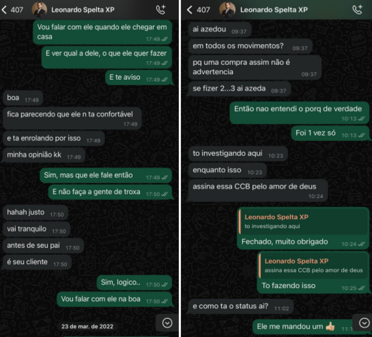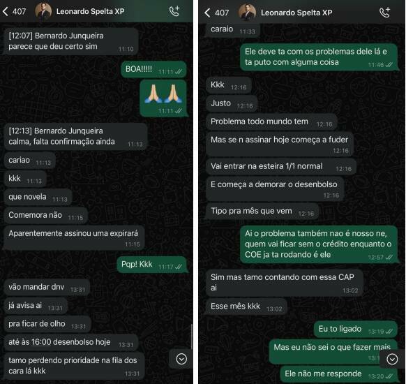 Conversas trocadas no WhatsApp entre Gabriel Puerta e seu então colega de trabalho, Augusto Chitero Spelta, revelam a pressão que Gabriel enfrentou para convencer seu pai a fechar o negócio. Em uma das mensagens, Spelta diz que Marco Antônio “antes de ser seu pai, é seu cliente”, evidenciando a tensão gerada pela expectativa de fechar a transação rapidamente. Spelta, preocupado com os bônus que o negócio traria, insistia na assinatura imediata dos documentos, apesar das hesitações do empresário.