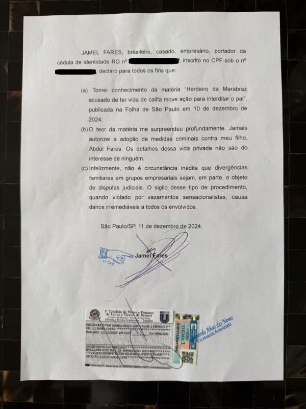 By Prudente Notícias15/12/2024A disputa judicial entre Jamel Fares, empresário renomado, e seu filho Abdul Fares, noivo da atriz Marina Ruy Barbosa, chegou ao fim. Em...